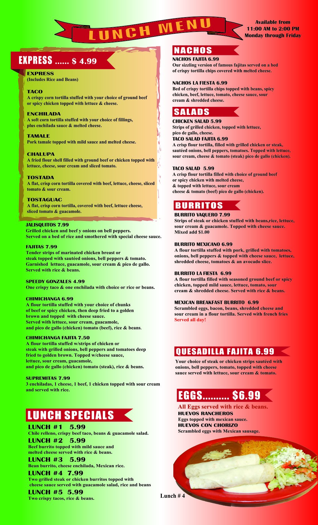 La Fiesta Mexican Restaurant On Twitter Our Lunch Menu Is Available From 11 00 Am To 2 00 Pm Take A Peak At It Before You Come In Lafiesta Restaurant Mexicanfood Https T Co Vvwosiemfj Twitter